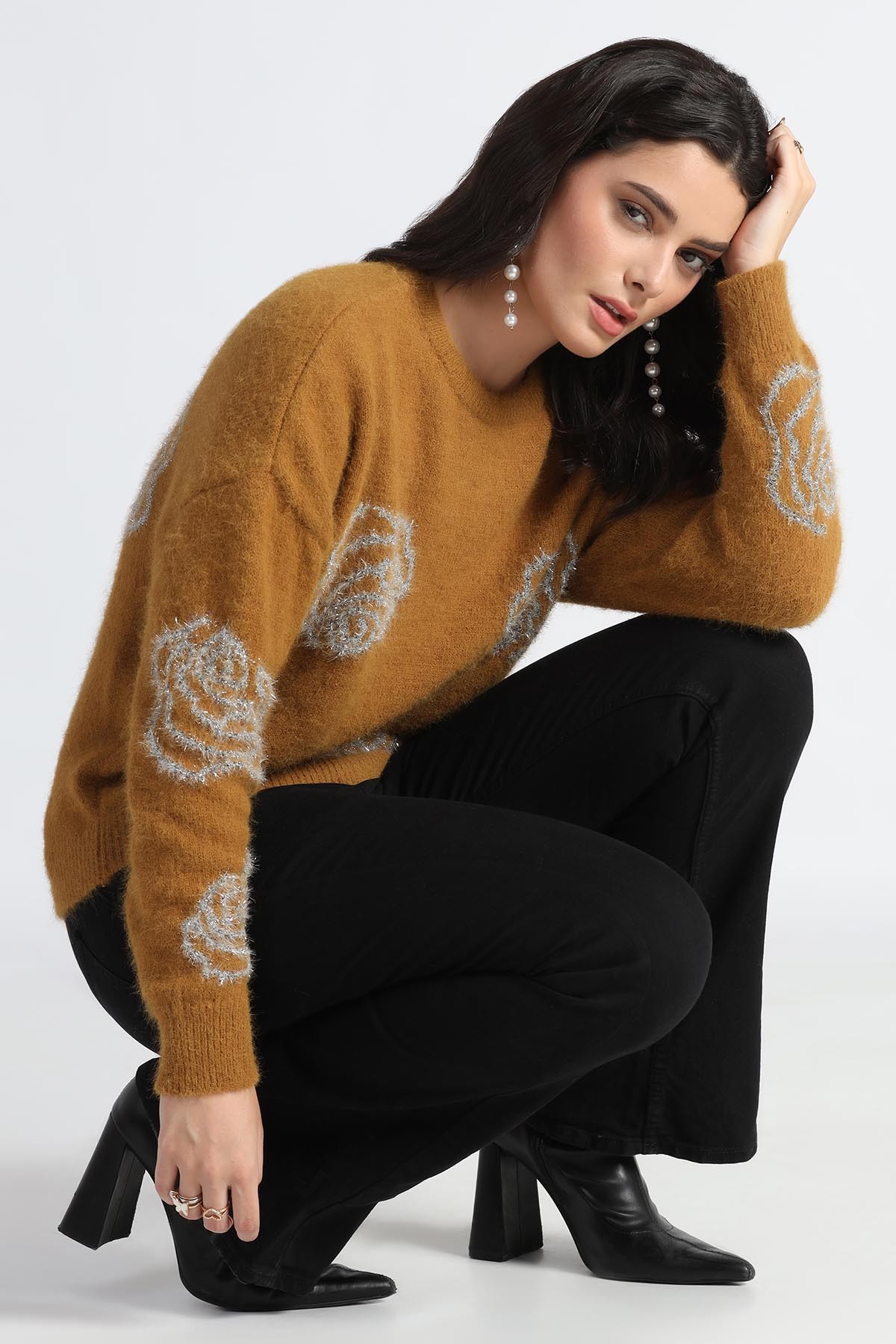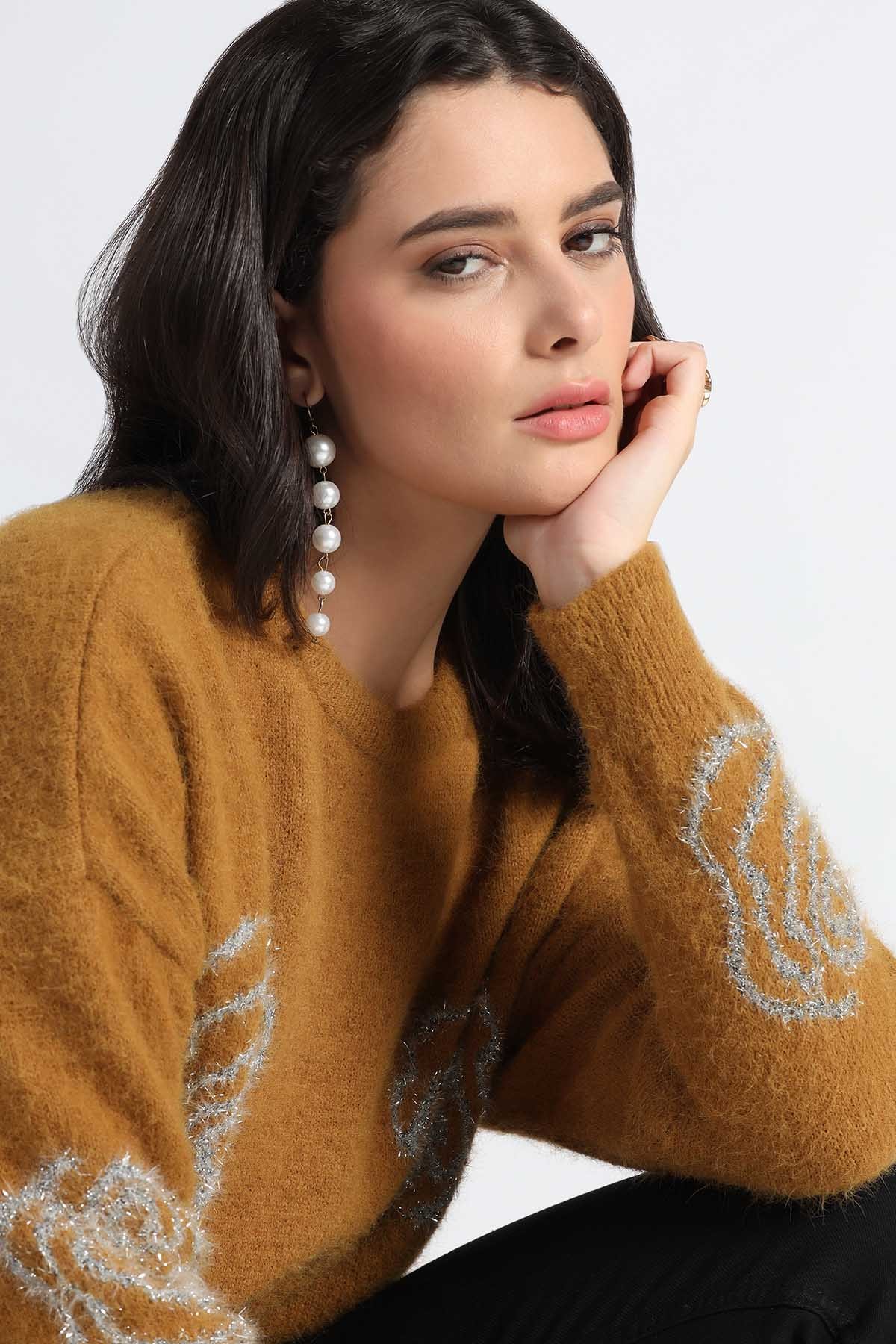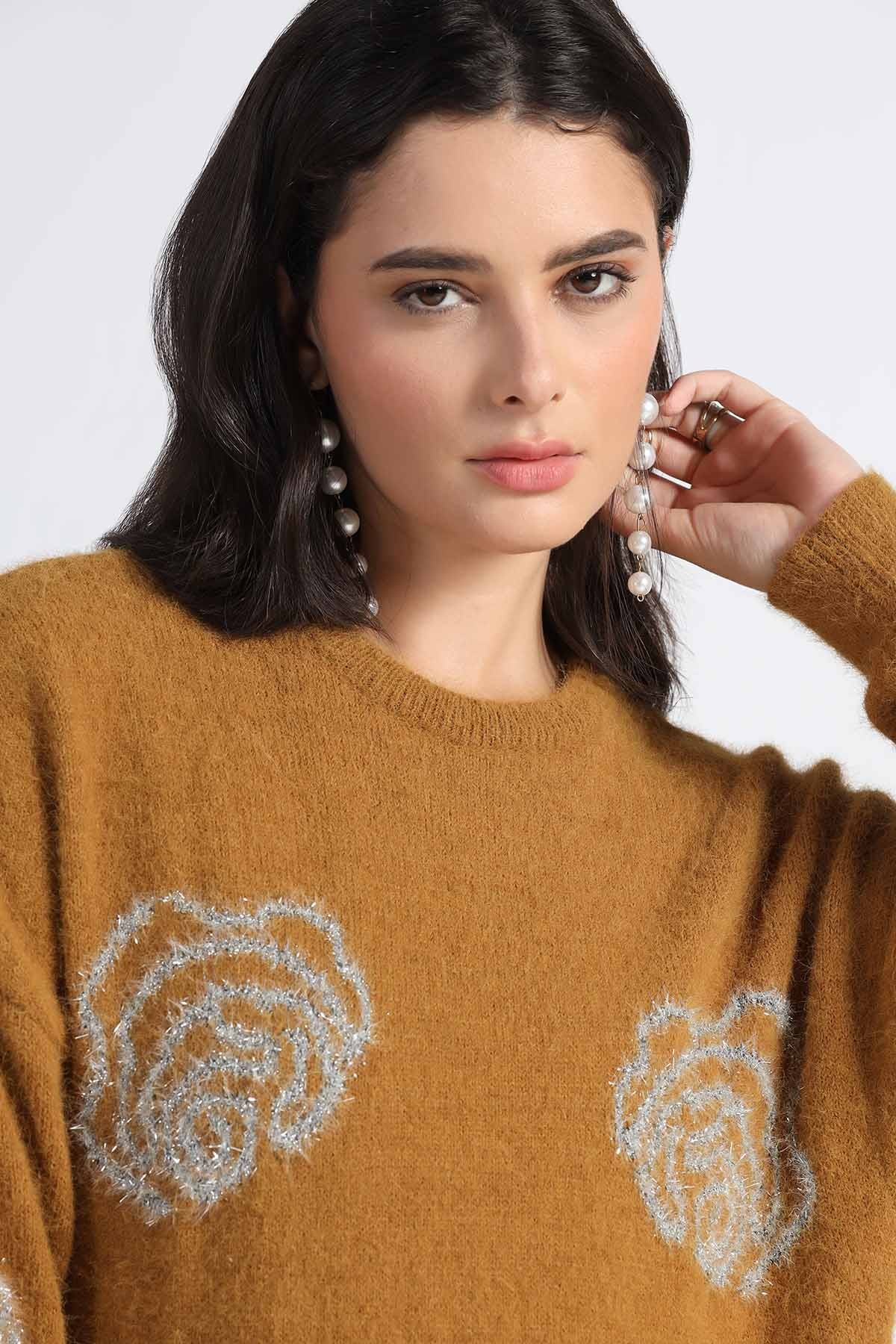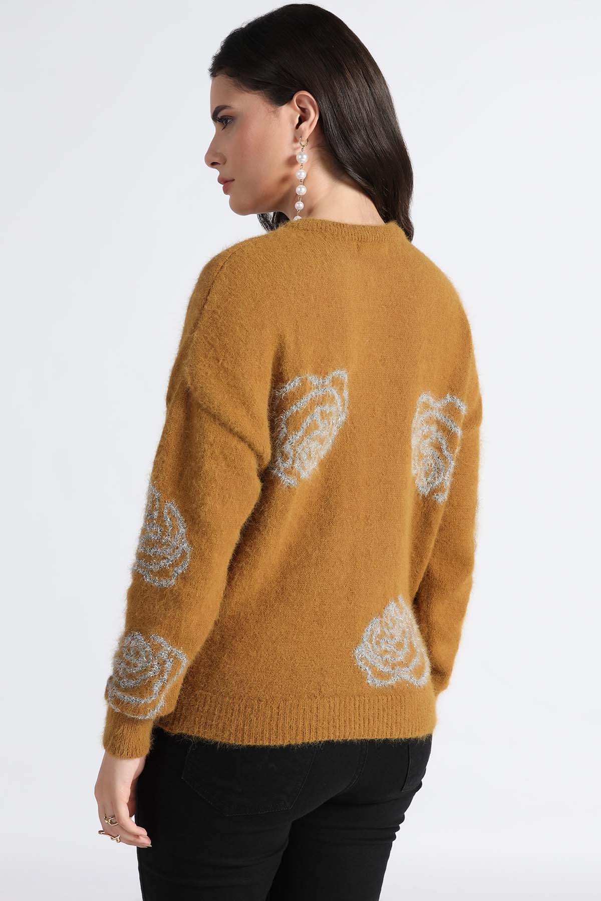 METALLIC FLORAL INTARSIA SWEATER