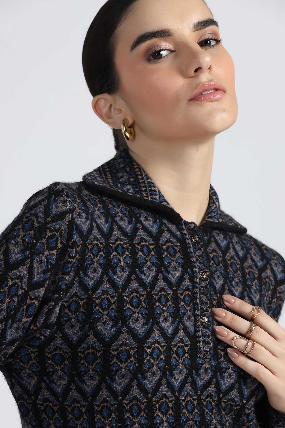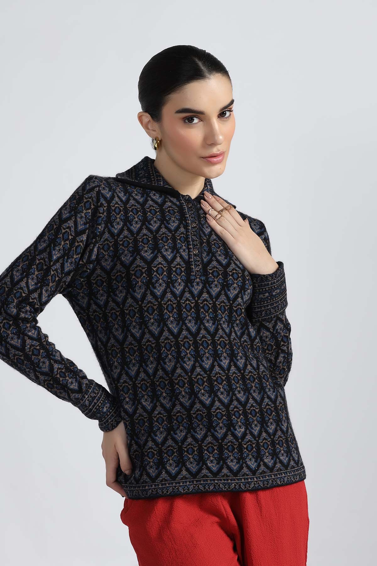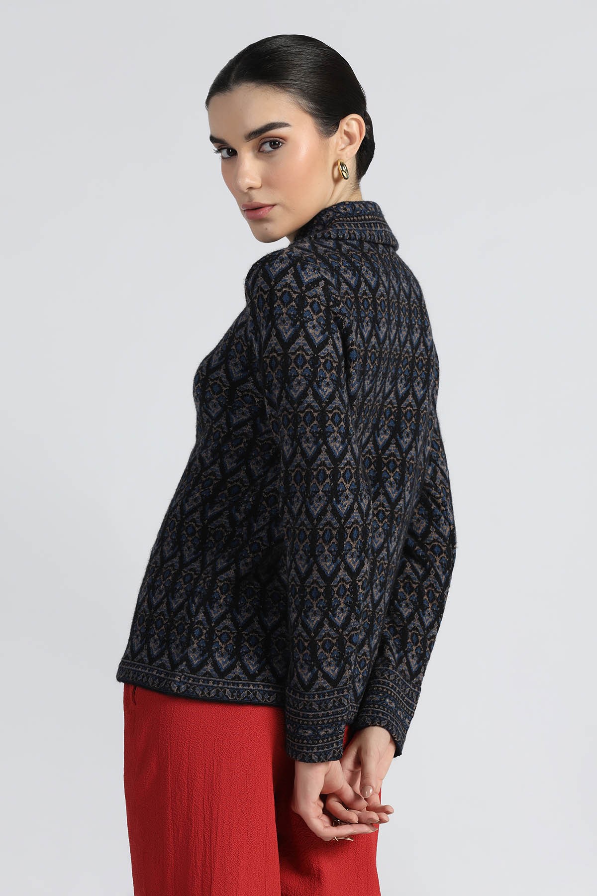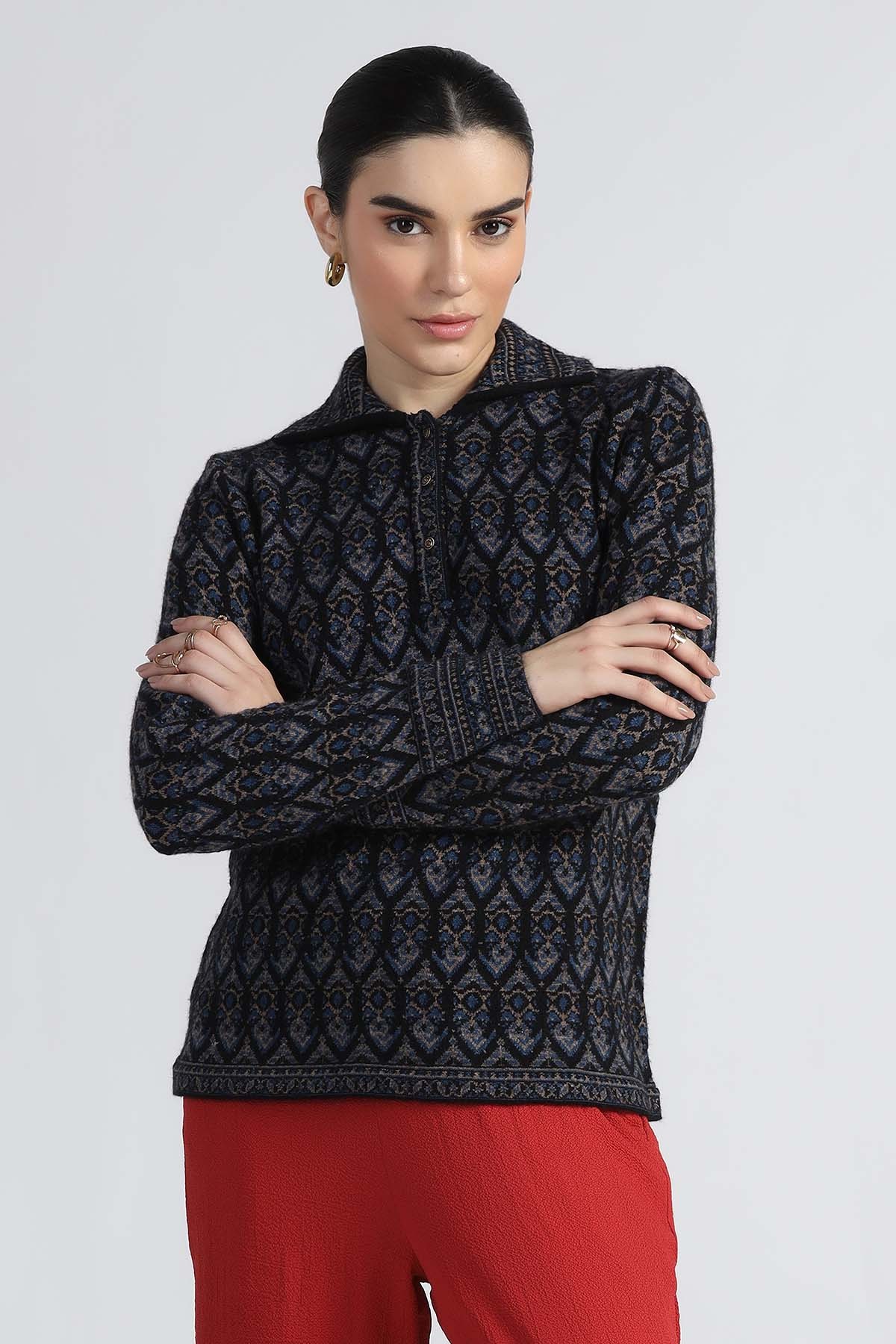 POLO NECK ETHNIC PASELY JACQUARD SWEATER