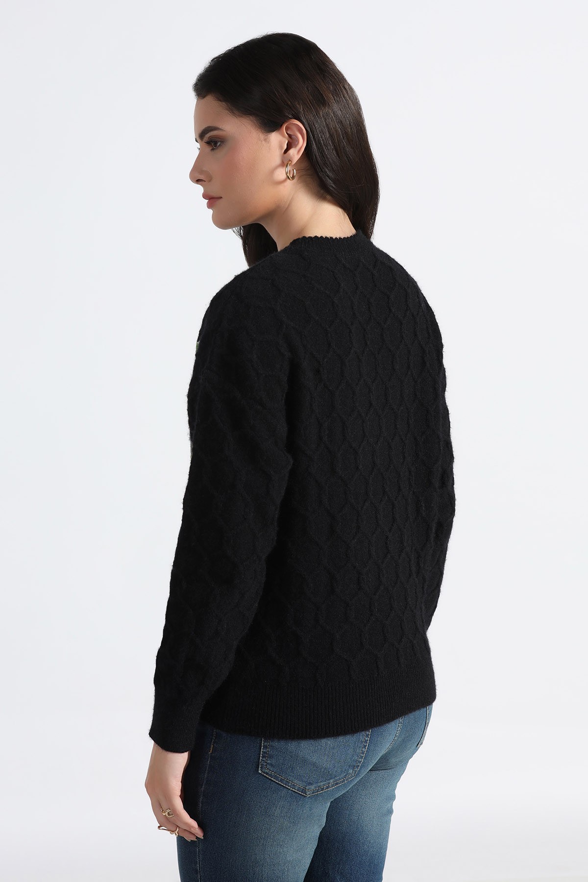 ROUND NECK INTARSIA SWEATER