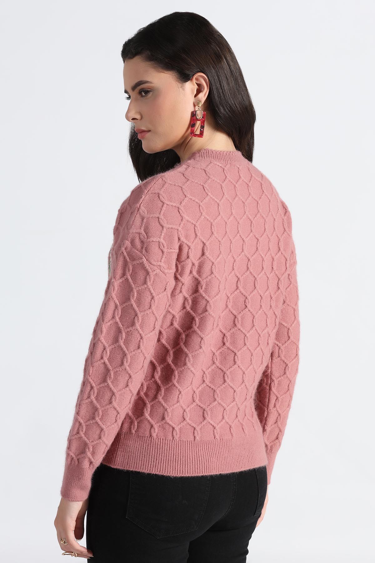 ROUND NECK FLORAL PLUSH TRANSFER JACQUARD SWEATER