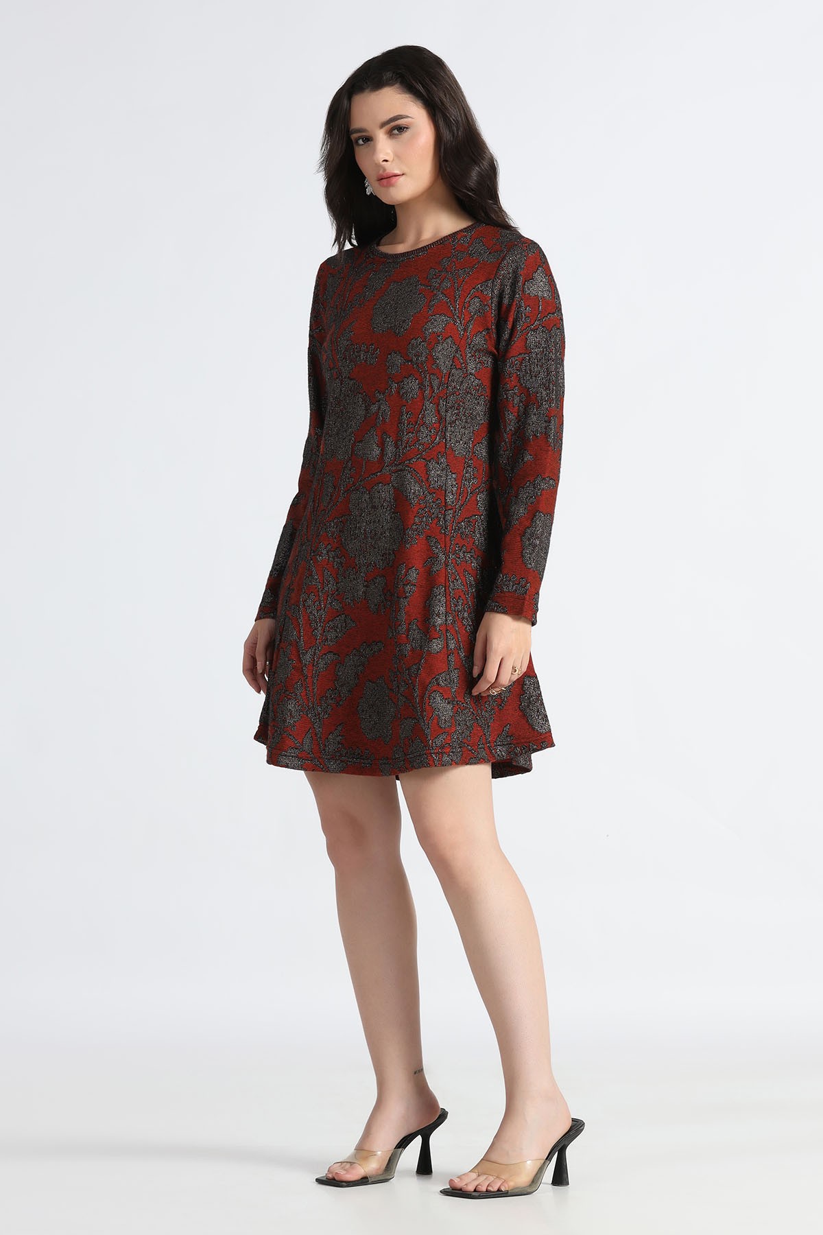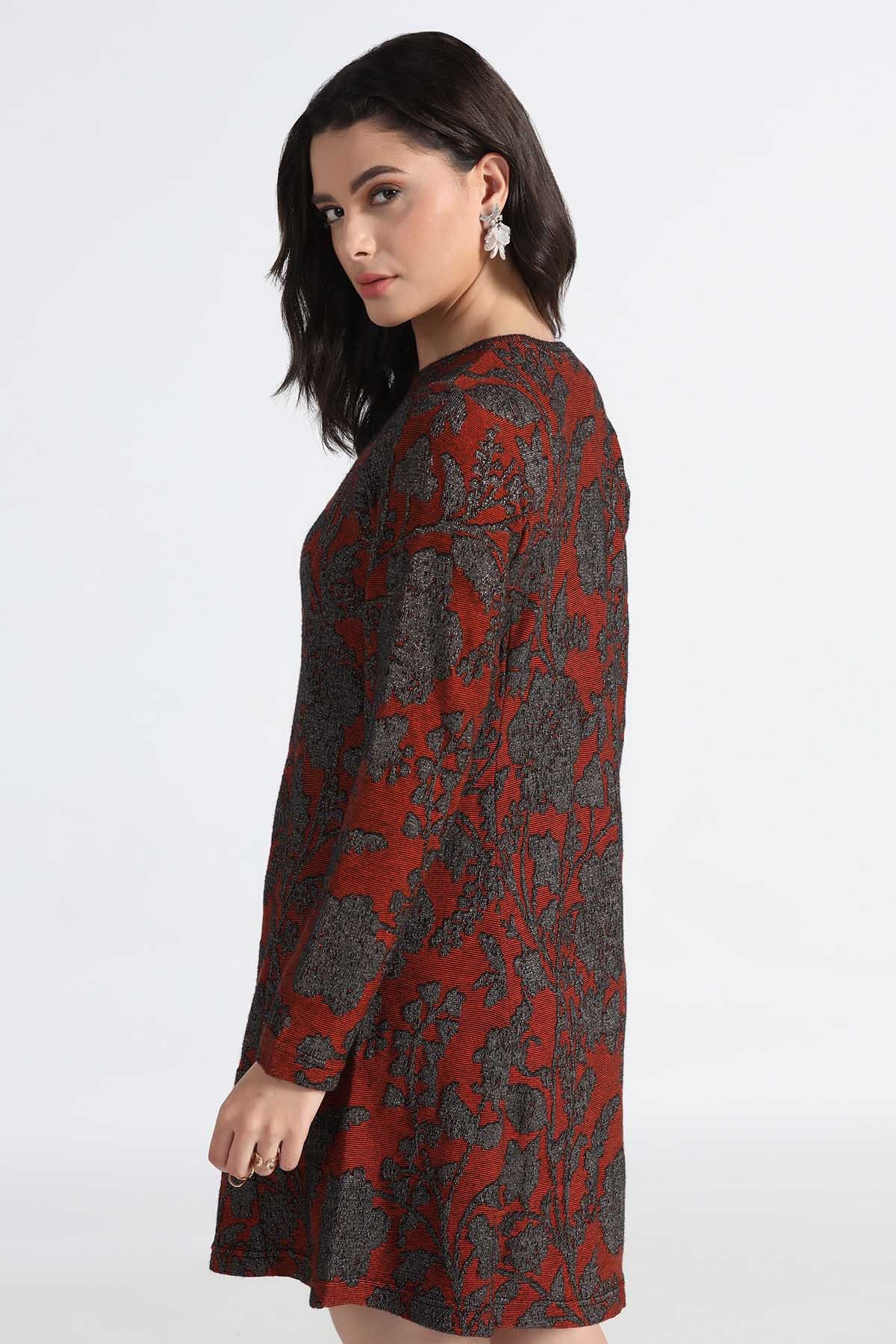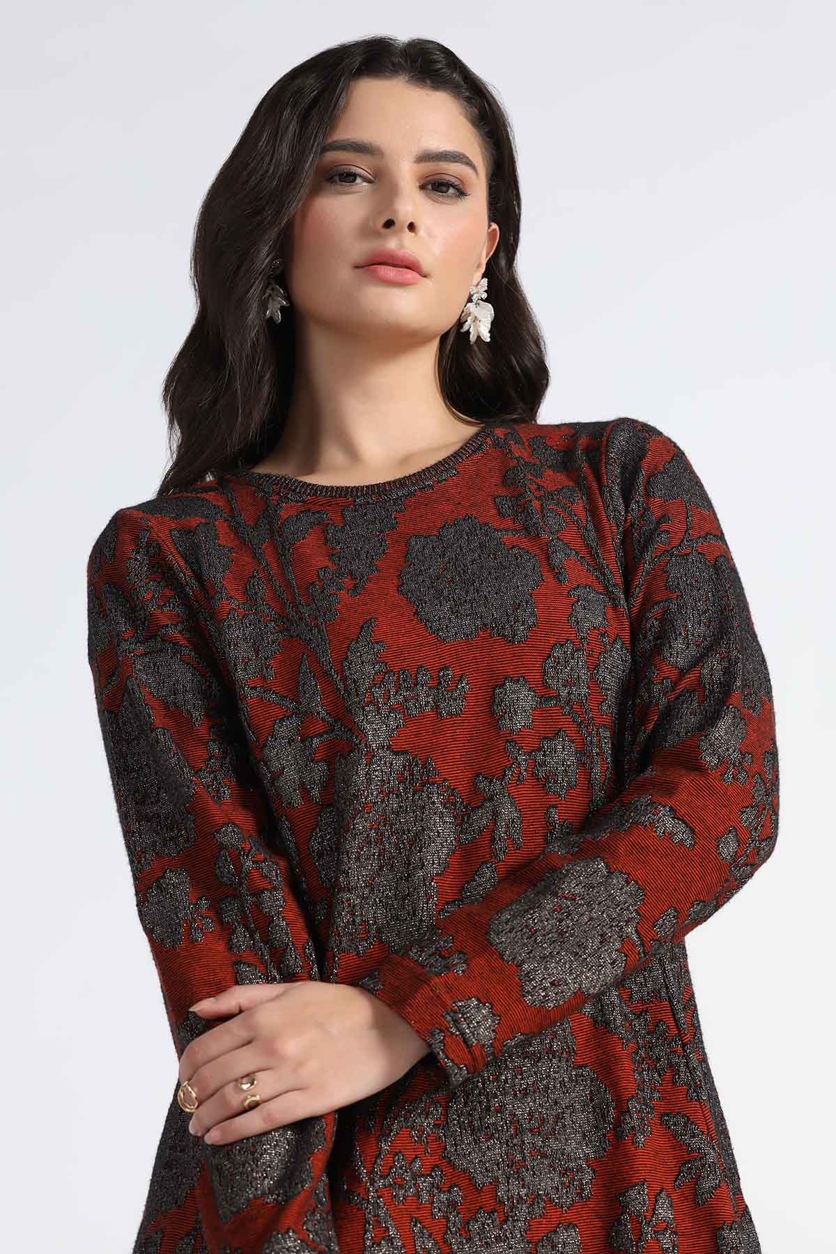 FLORAL METALLIC KNITED TRANSFER JACQUARD TUNIC