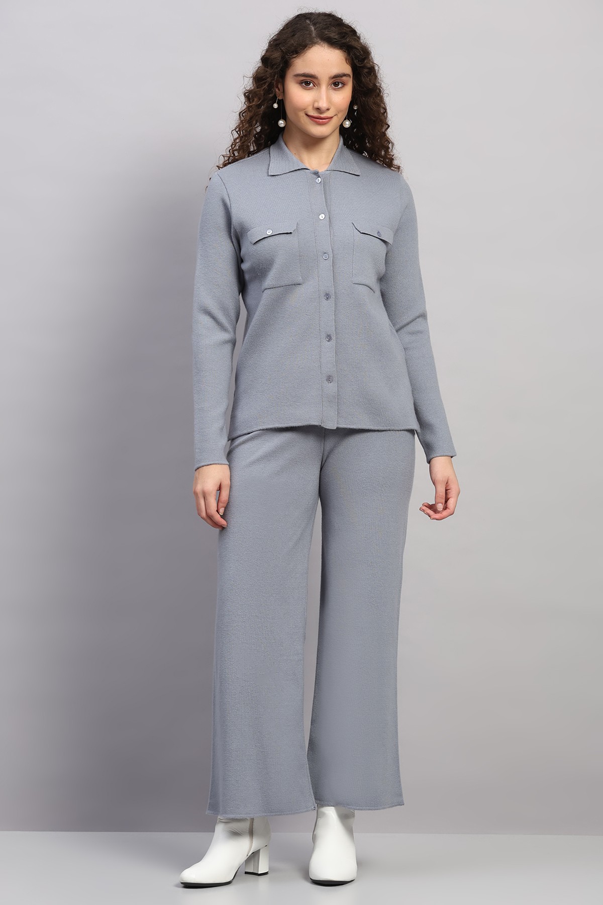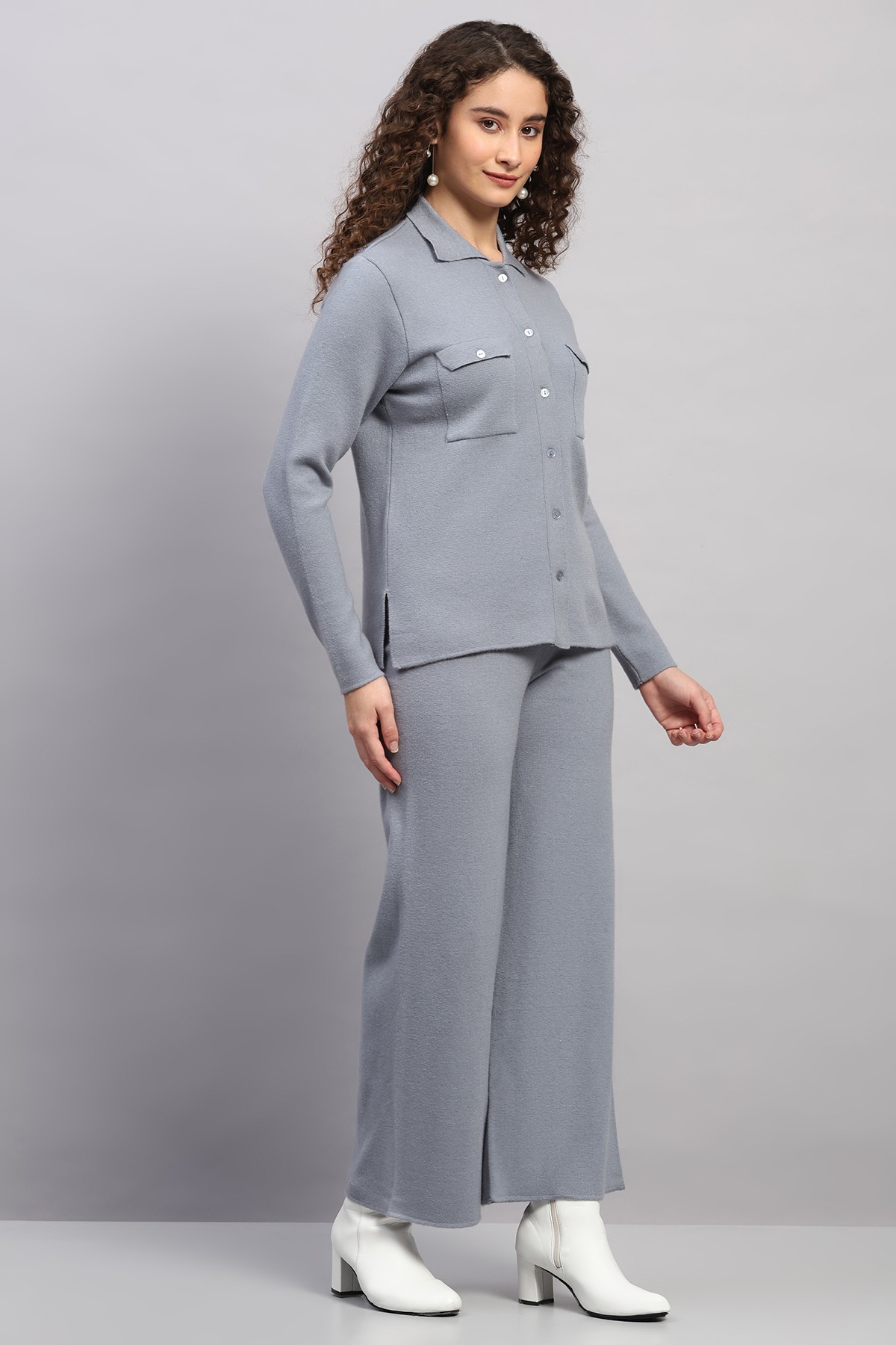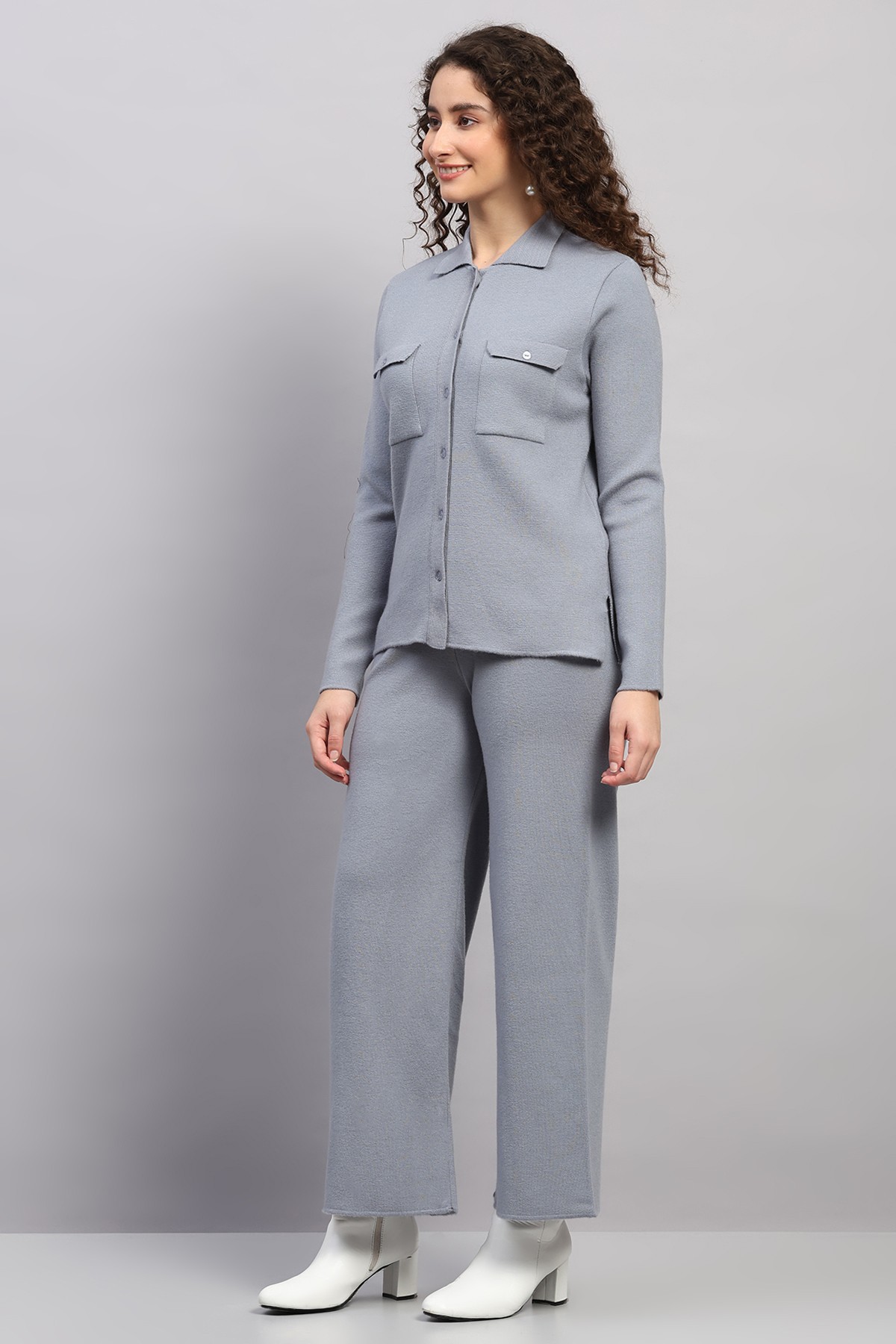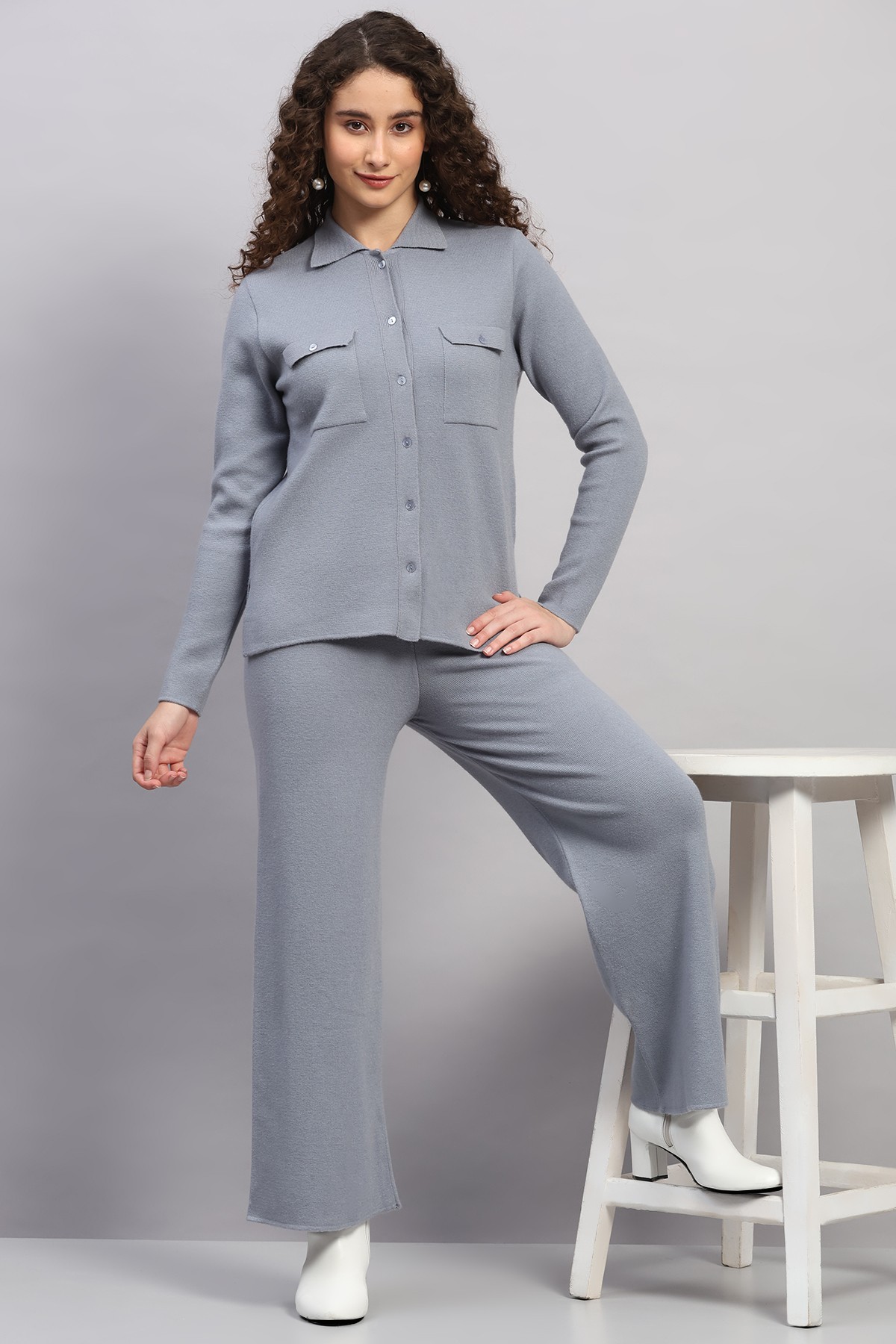 KNITED SHIRT COLLAR WOOLEN CO-ORD SET