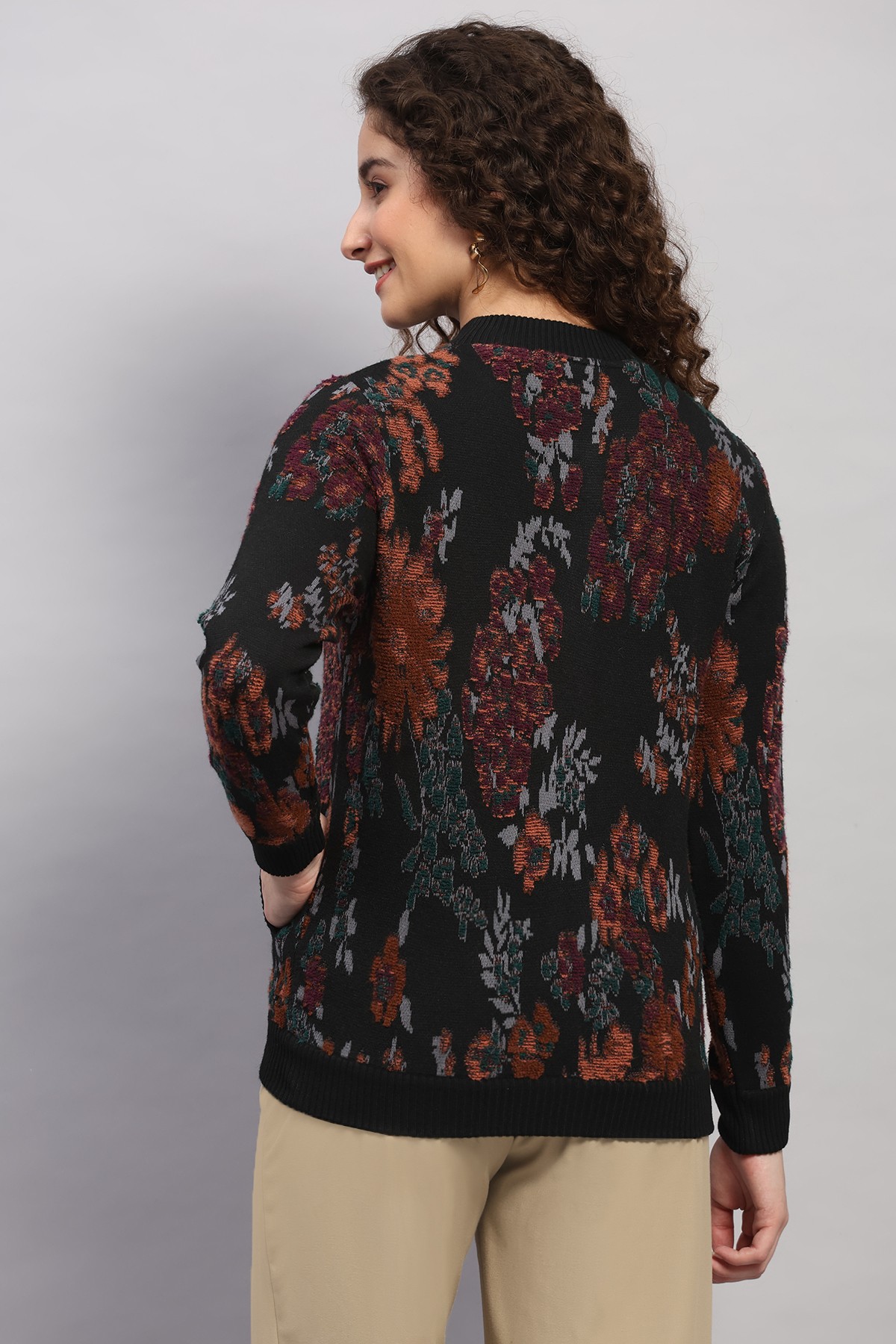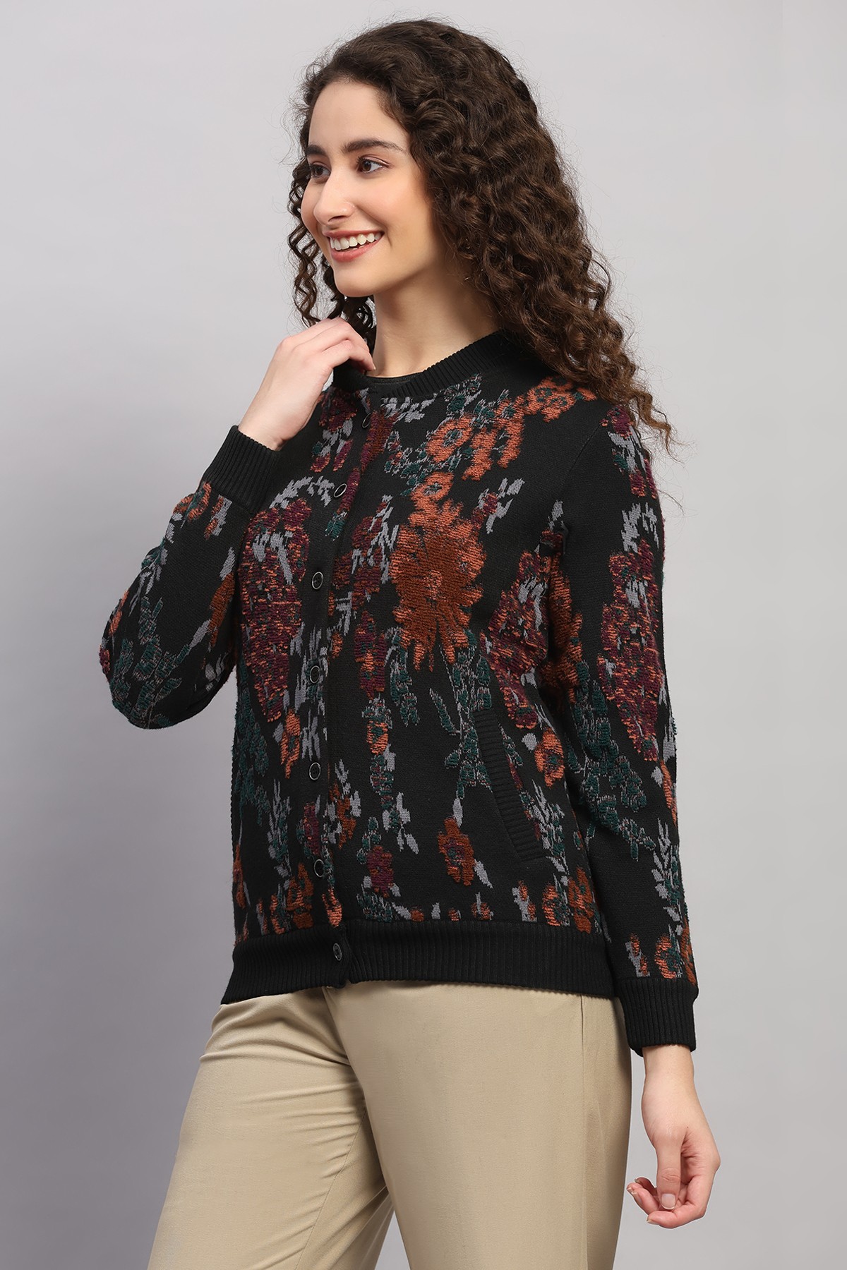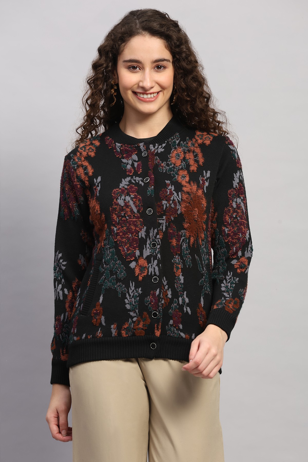 VARSITY COLLAR FLORAL PLUSH JACQUARD CARDIGAN