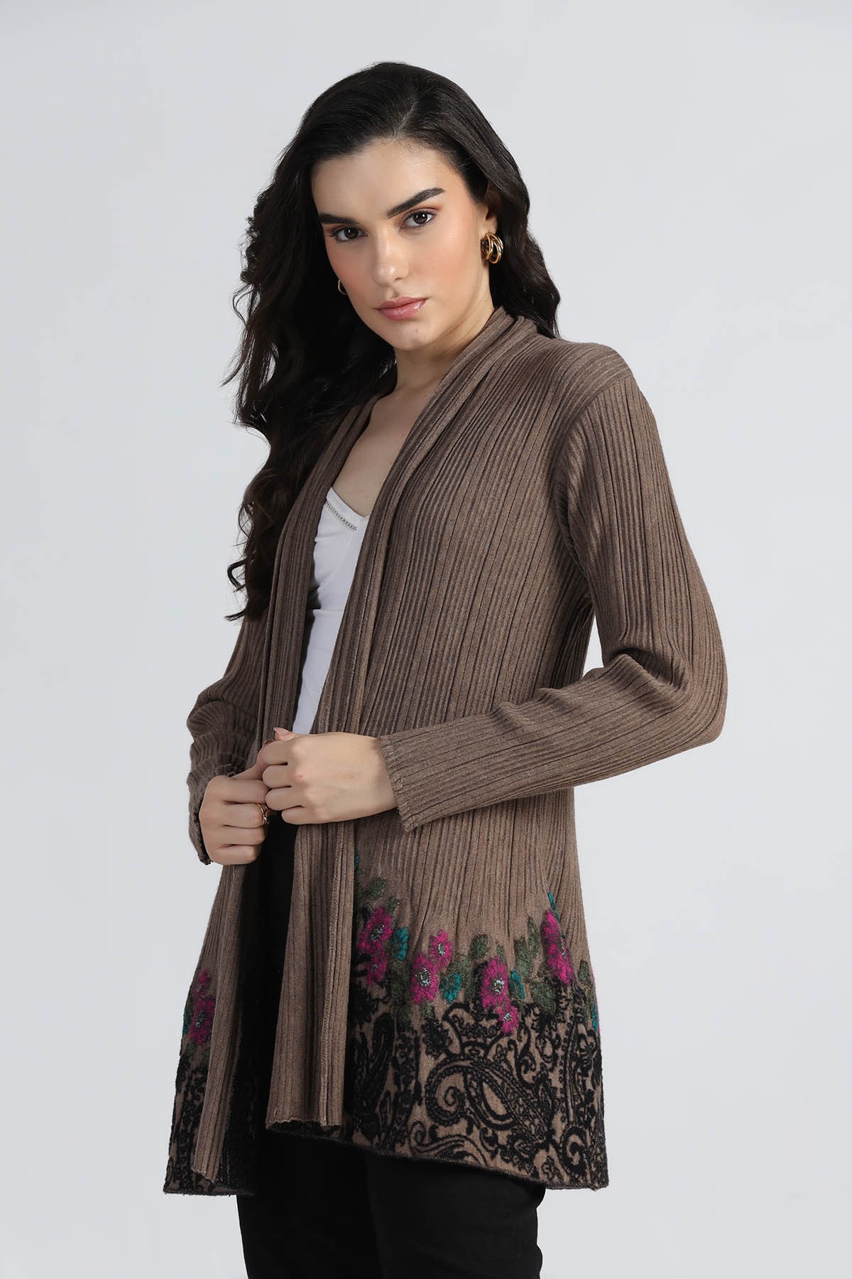 FLORAL TRANSFERRED JACQUARD CARDIGAN