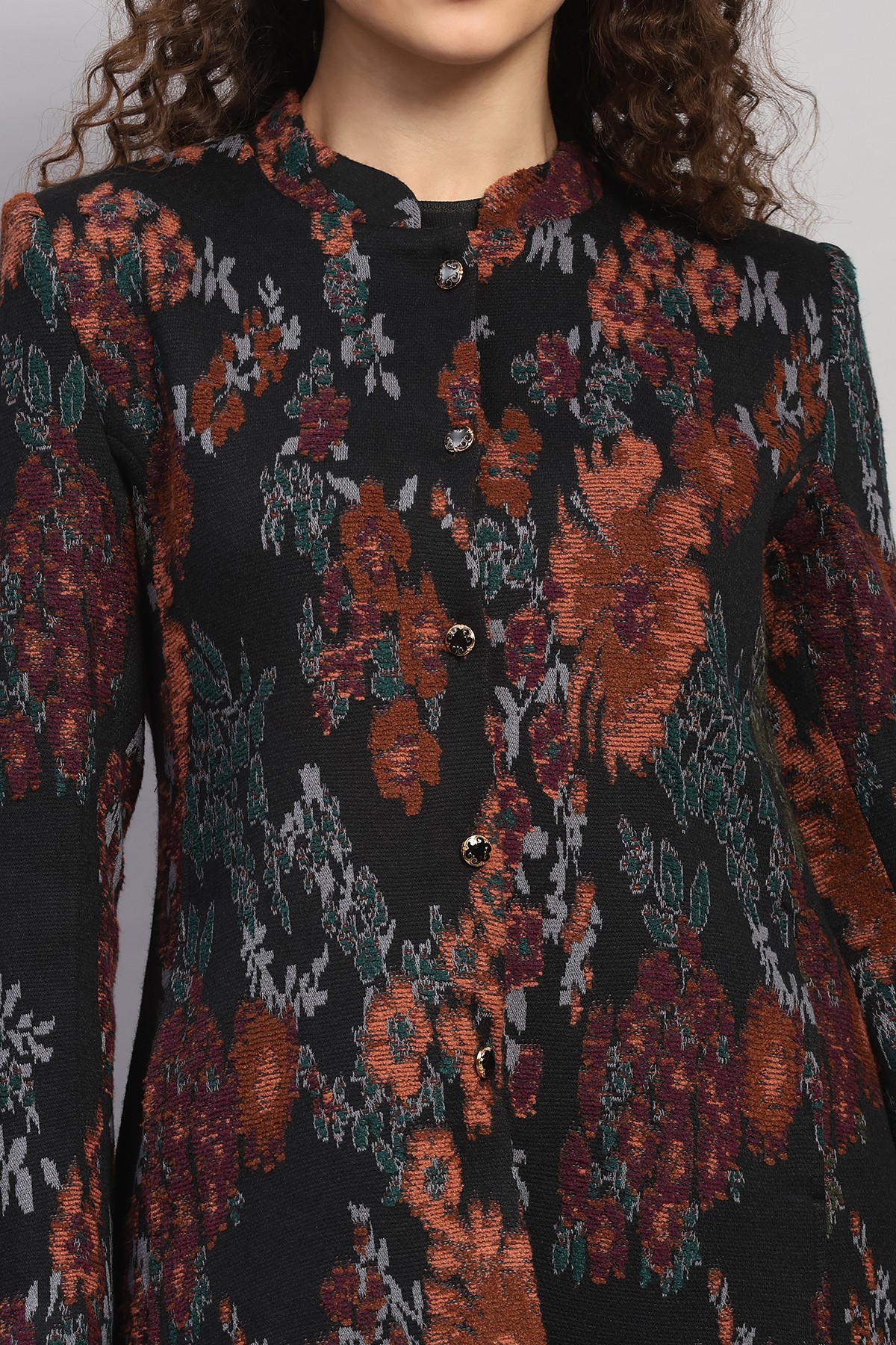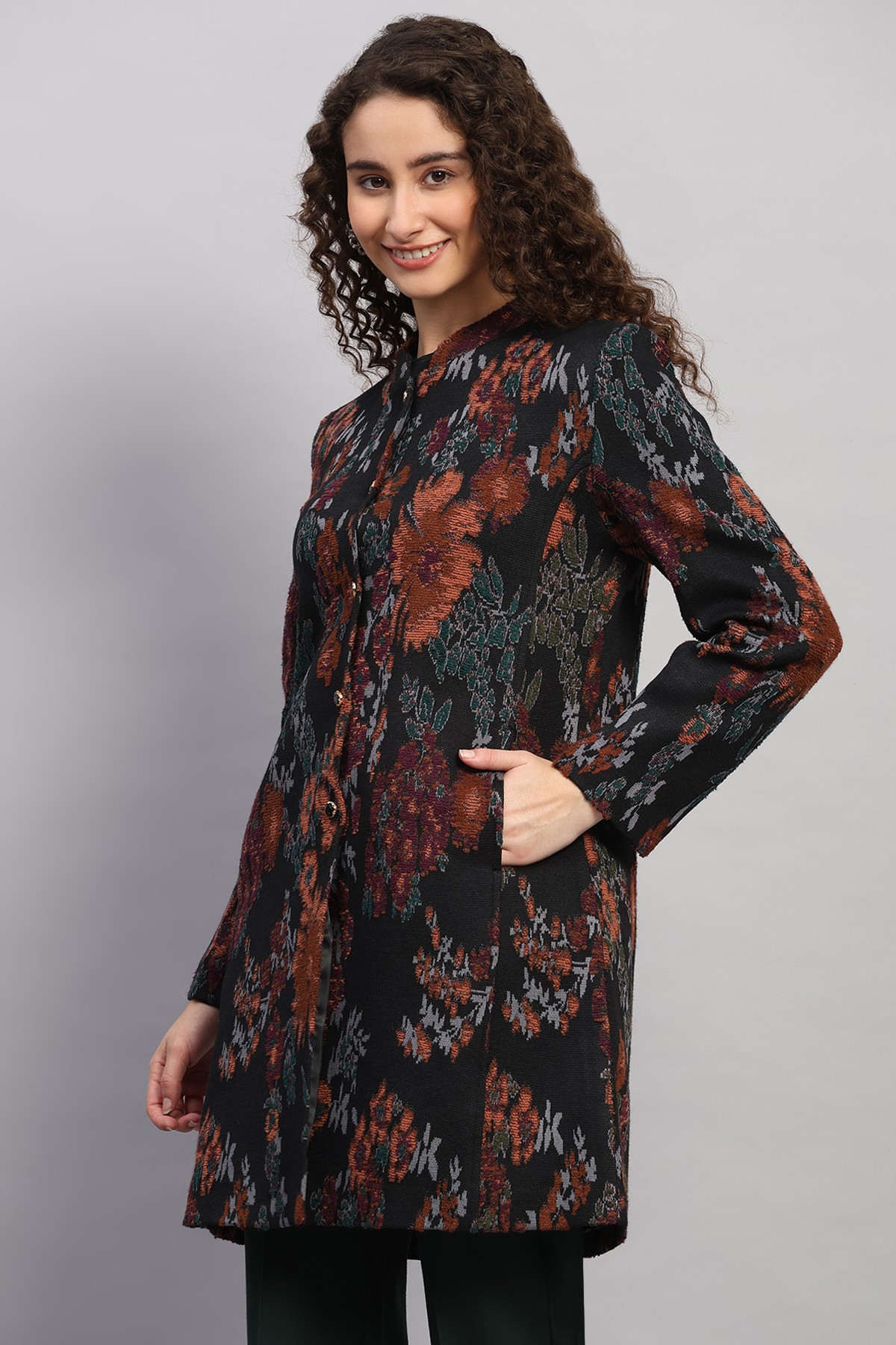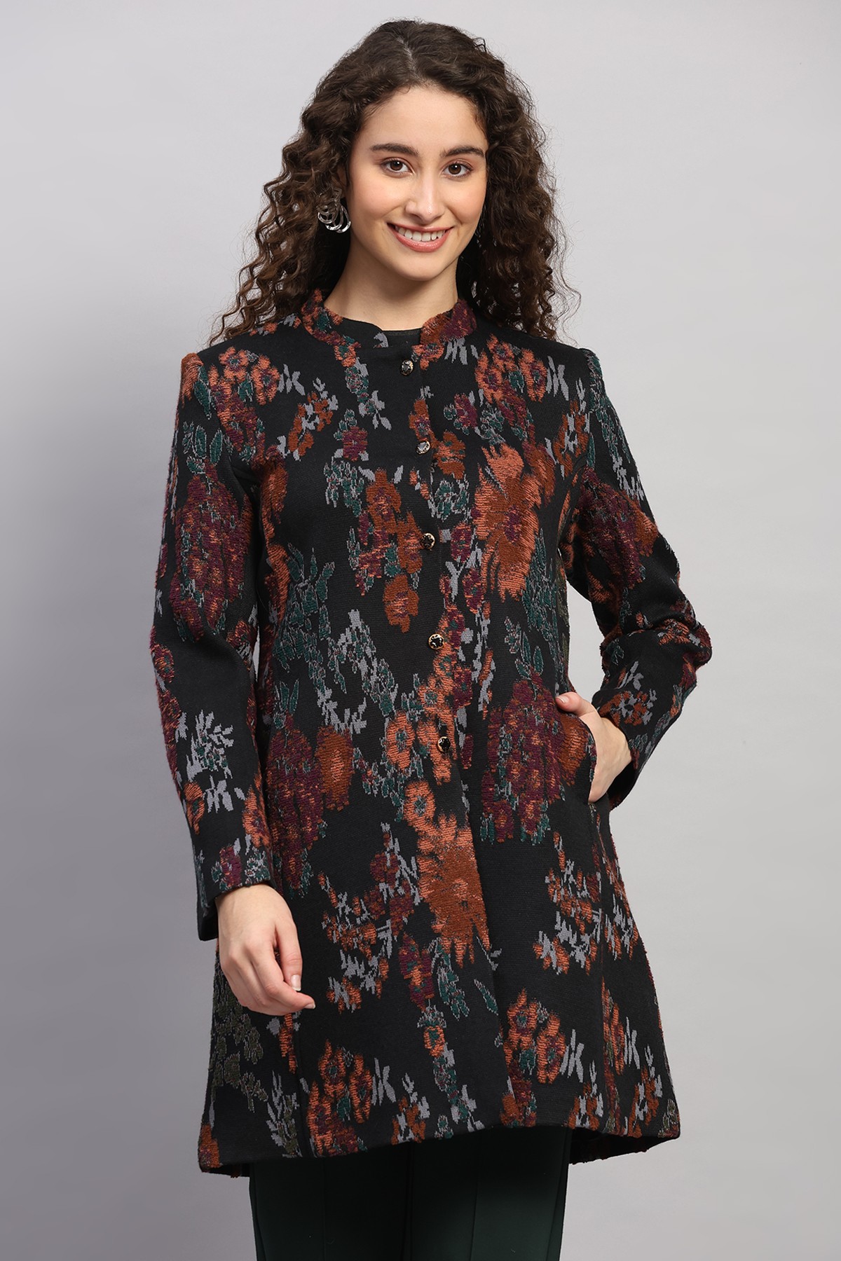FLORAL JACQUARD KNITED COAT