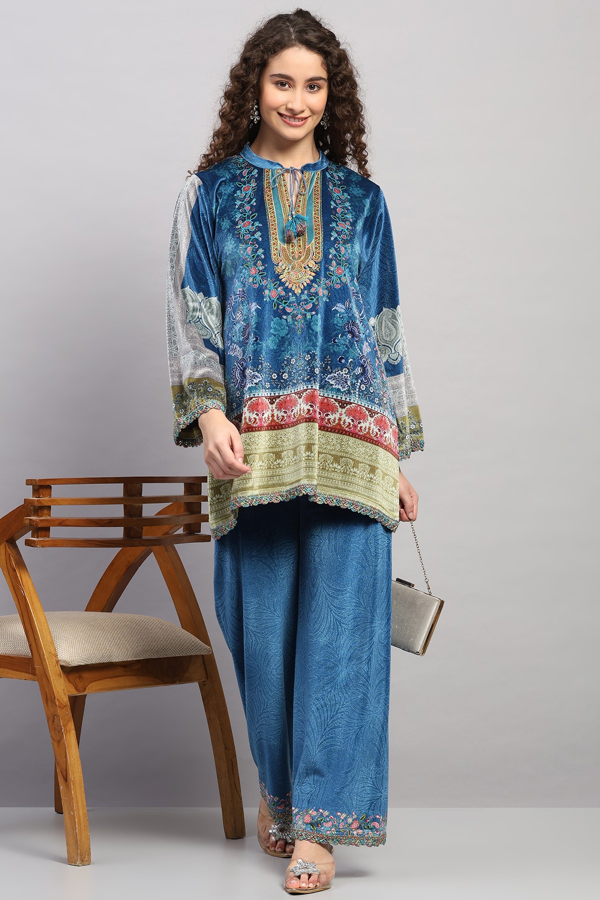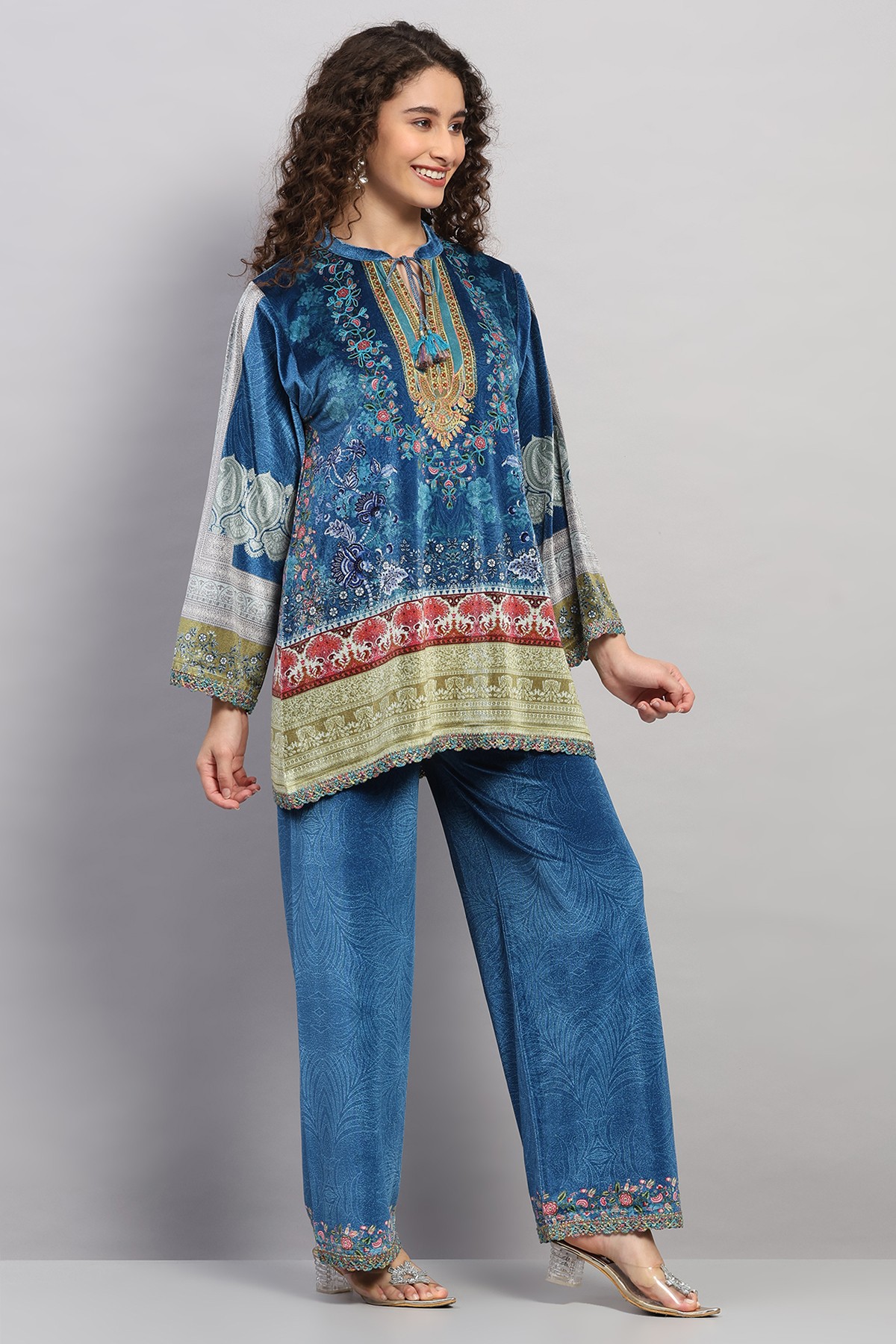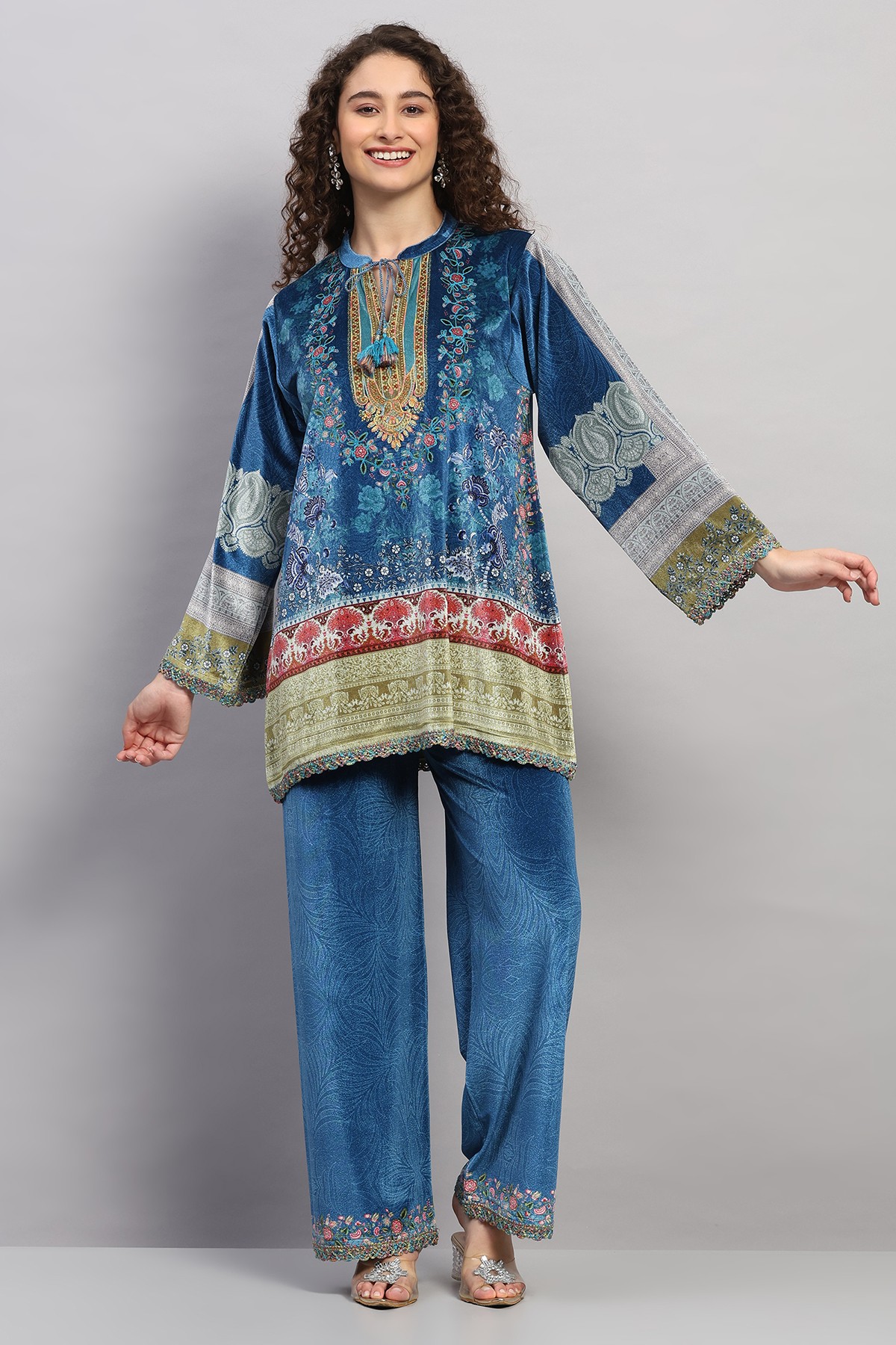 DIGITAL PRINTED ETHNIC VELVET CO-ORD SET WITH EMBROIDERY