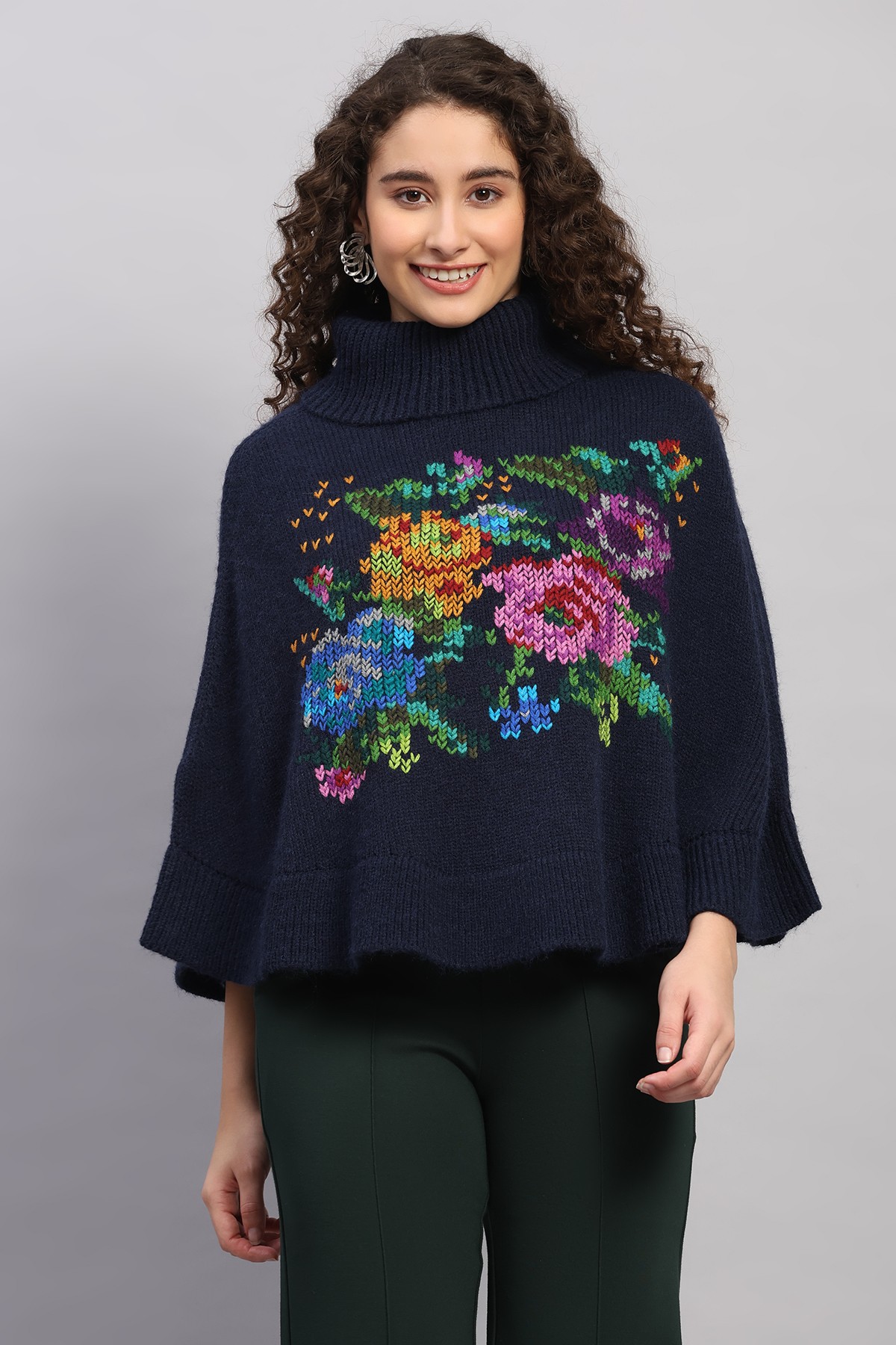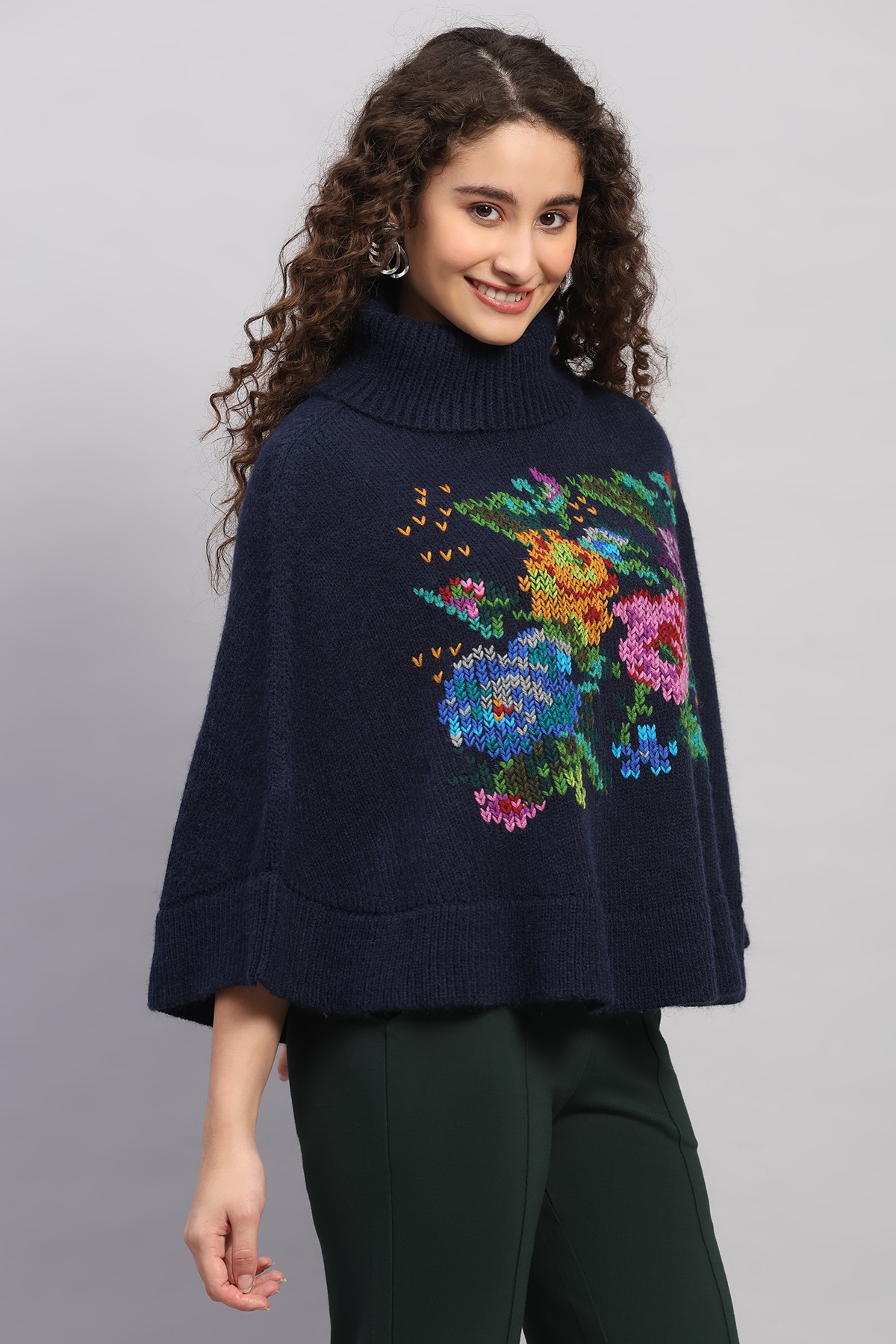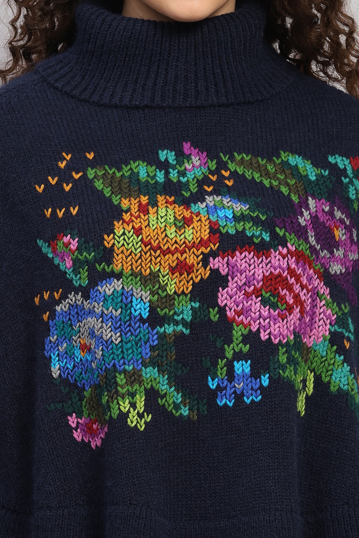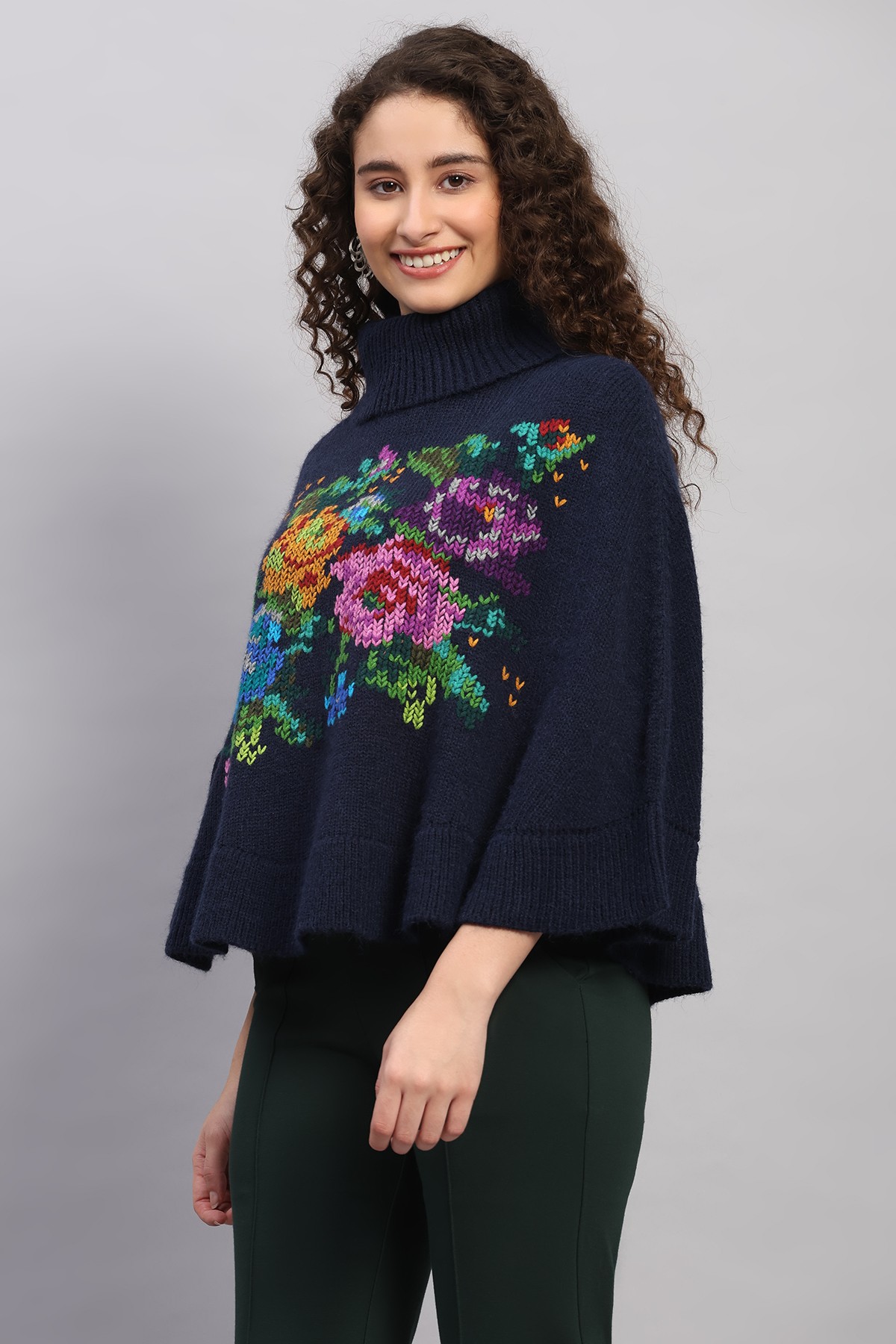 FLORAL HAND EMBROIDERD HIGH NECK PONCHO