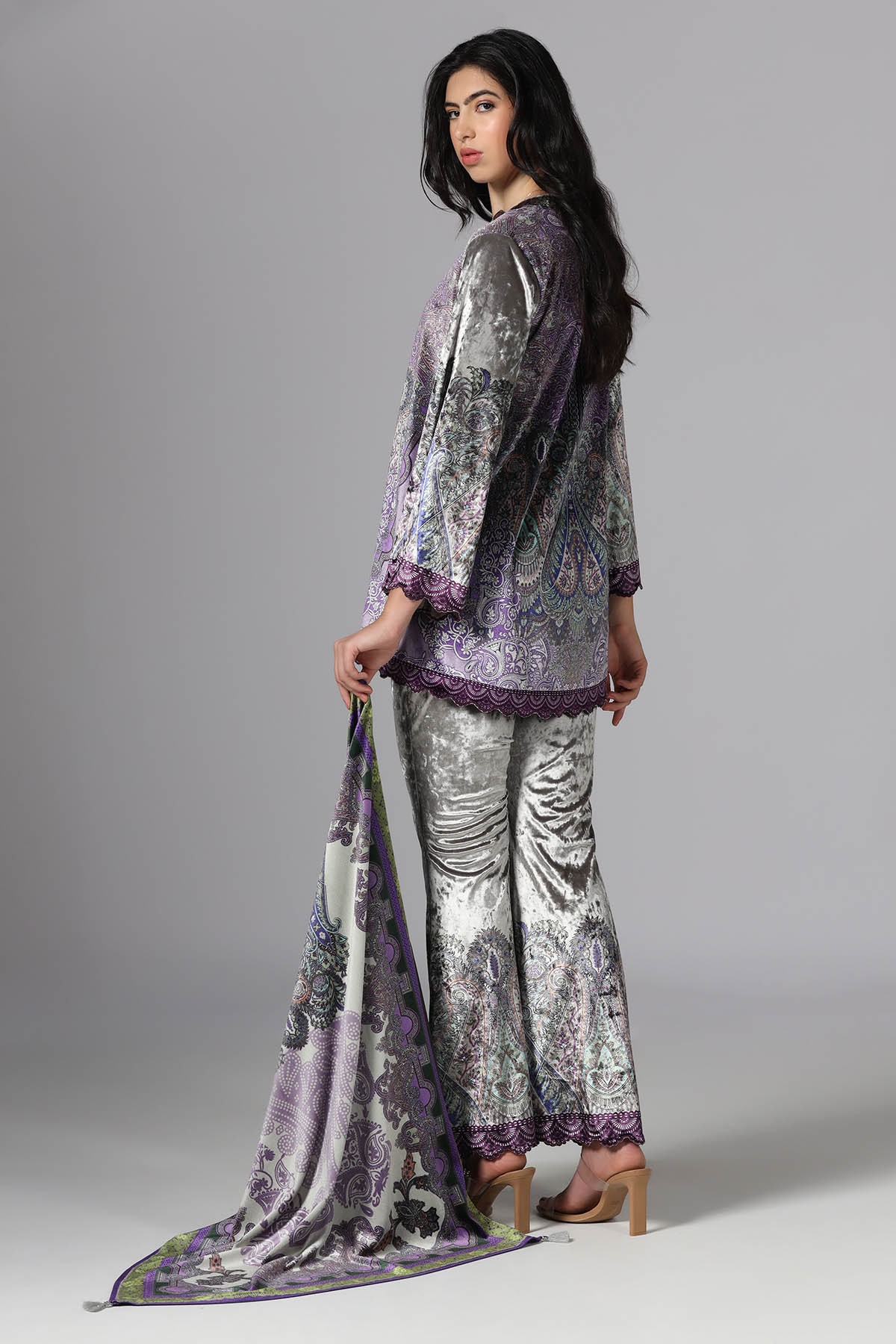 DIGITAL PRINTED VELVET CO-ORD SET WITH STOLE