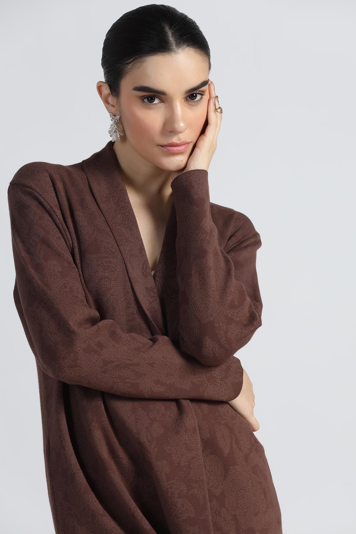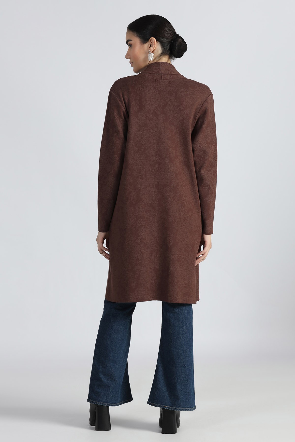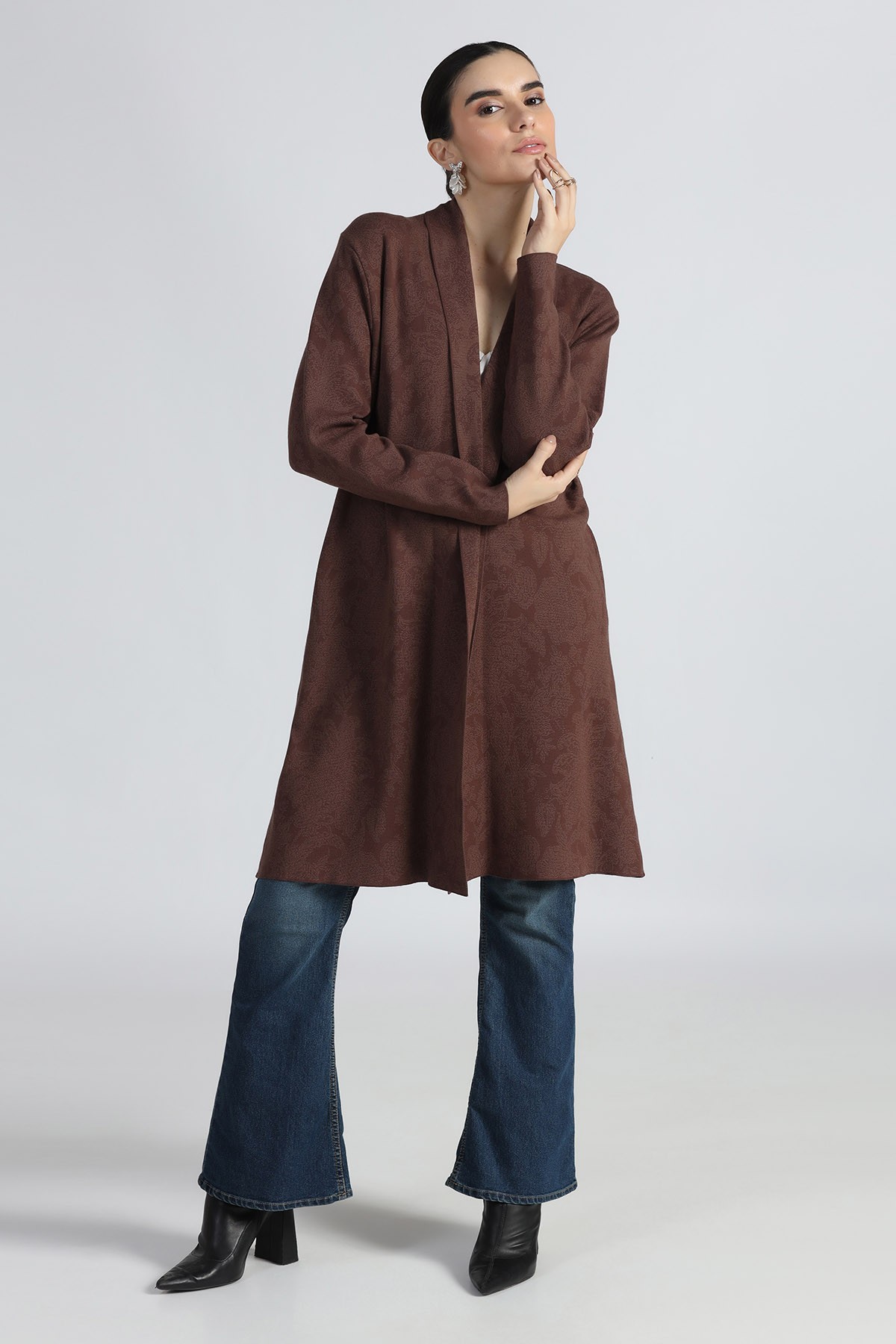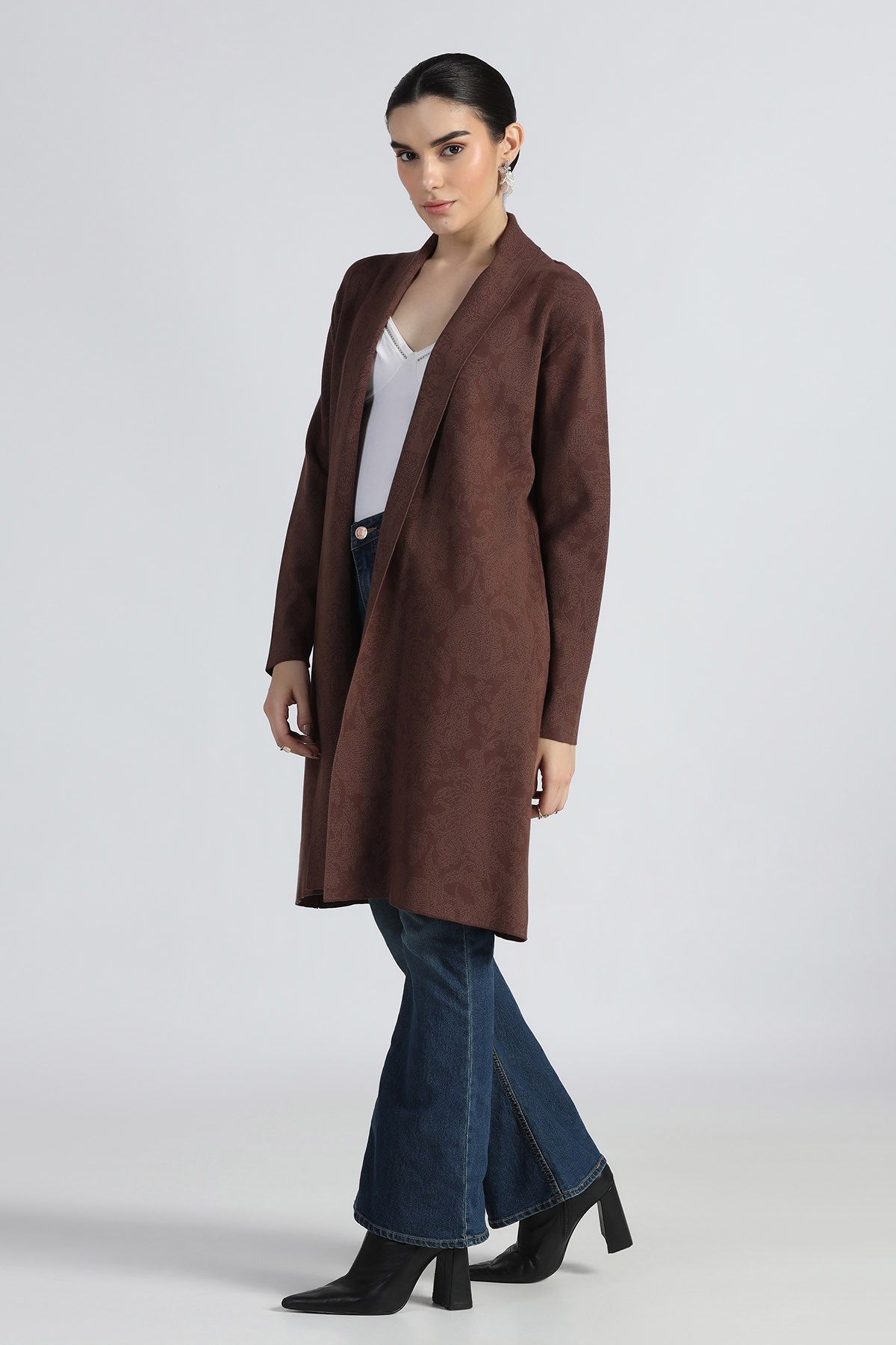 ORIENTAL JACQUARD SHAWL COLLAR OPEN CARDIGAN