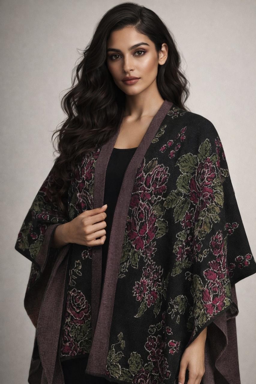 Buy PLUSH KNITTED FLORAL JACQUARD CAPE Online in India