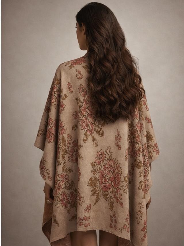 PLUSH KNITTED FLORAL JACQUARD CAPE